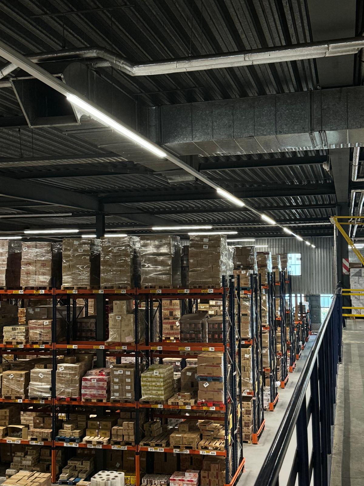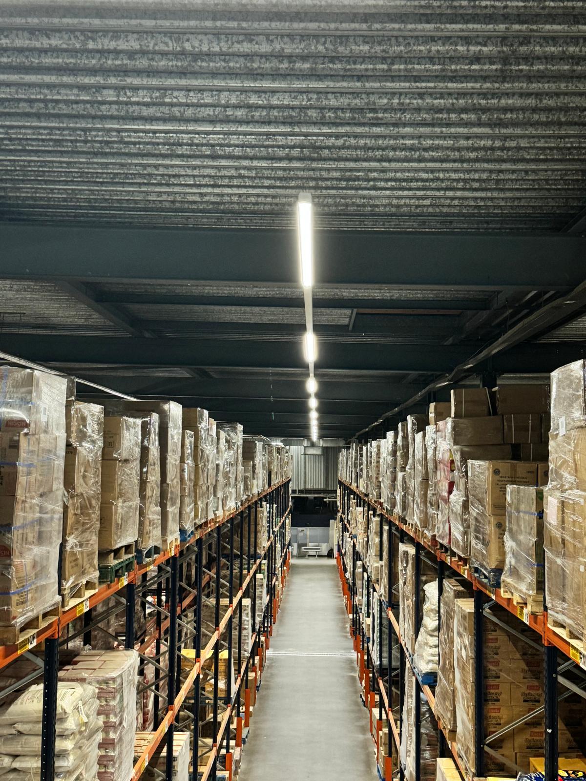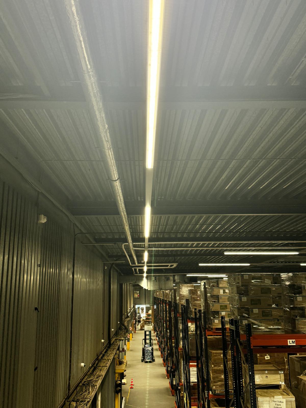 We zijn gestart met het zorgvuldig demonteren van de bestaande lichtlijnen. Vervolgens hebben we een compleet nieuw systeem van LED-lichtlijnen geïnstalleerd, volledig volgens de NEN1010- en NEN3140-normen. Deze nieuwe verlichting zorgt niet alleen voor een heldere en gelijkmatige lichtverdeling, maar draagt ook bij aan operationele veiligheid, energiezuinigheid en duurzaamheid binnen het magazijn.
